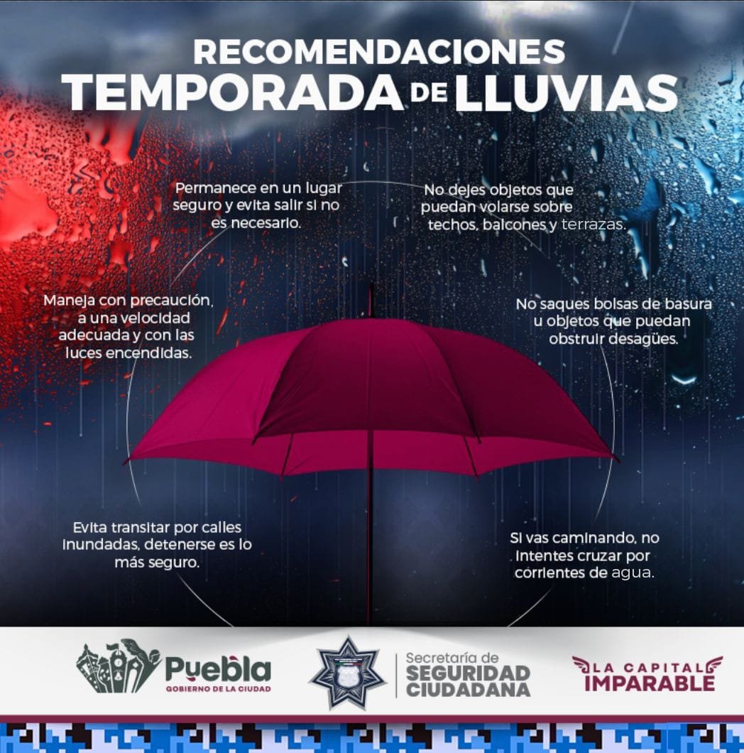 Puebla, Pue., 29 de mayo de 2025.- El Gobierno de la Ciudad, a través de la Secretaría de Seguridad Ciudadana (SSC) y su Dirección de Proteccióne Civil Municipal, exhorta a automovilistas a tomar medidas de prevención y extremar precauciones, ante el pronóstico de lluvias, fuertes vientos y tormentas eléctricas en las próximas horas.