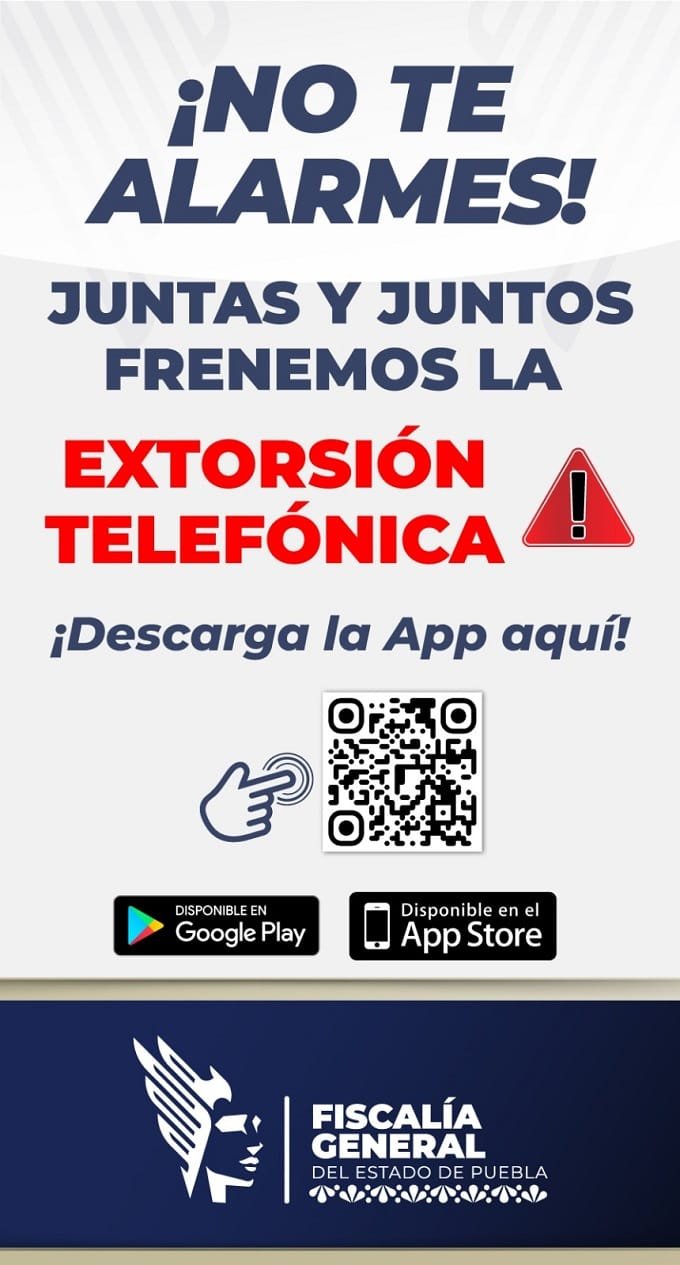 La participación de todas y todos es fundamental para frenar la extorsión telefónica. Al descargar “No Te Alarmes” de forma gratuita en fiscalia.puebla.gob.mx, ayudas a protegerte y a proteger a la comunidad. Juntas y juntos frenamos la extorsión.