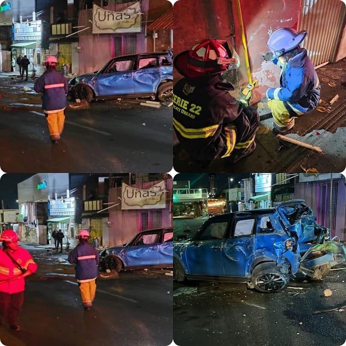 El vehículo además causó daños en la fachada de un inmueble, en un puesto de tacos, en otro auto y una tubería de gas.