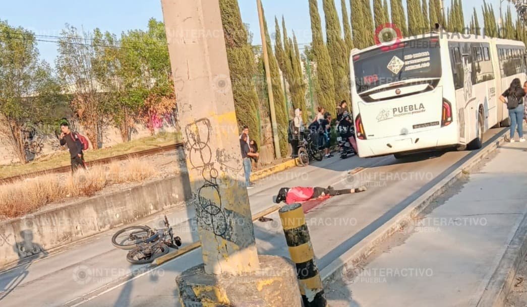 A la altura del tianguis de autos La Ciénega y a unos metros de la terminal La Rosa, la unidad T03 atropelló al ciclista, que llevaba equipo de seguridad.