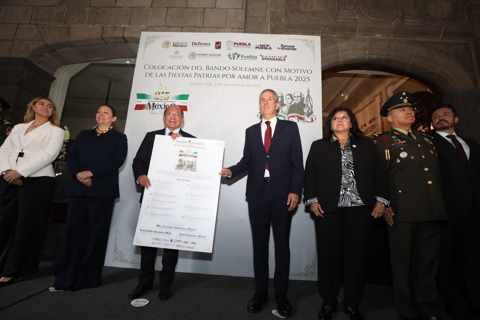 En representación del Gobierno de la Ciudad el presidente municipal, Pepe Chedraui Budib, participó en la ceremonia de lectura del Bando Solemne de Fiestas Patrias 2025, así como en la colocación de éste en la entrada de Palacio Municipal donde se informan las actividades programadas durante septiembre para la conmemoración del 215 Aniversario de la Independencia.