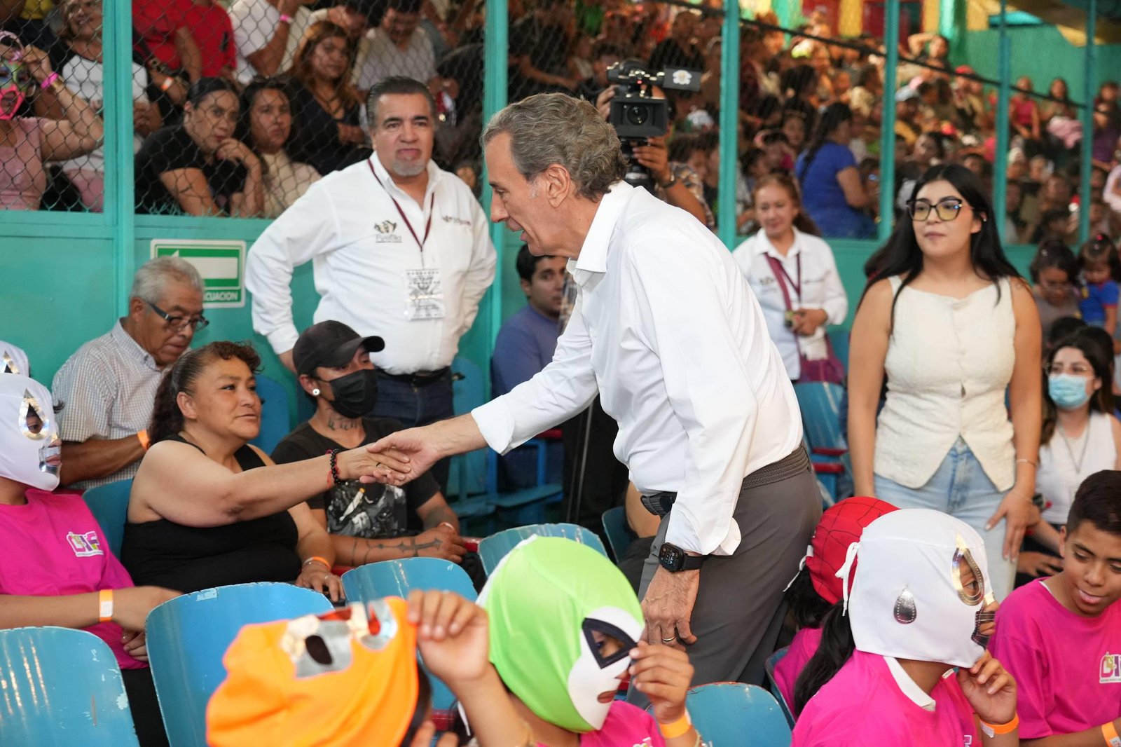 Puebla, Pue., 28 de abril de 2026.- En el marco del Día de la Niñez, el presidente municipal, Pepe Chedraui, convivió con familias poblanas en una tarde de lucha libre en la Arena Puebla, un espacio de recreación, cercanía y sano esparcimiento.