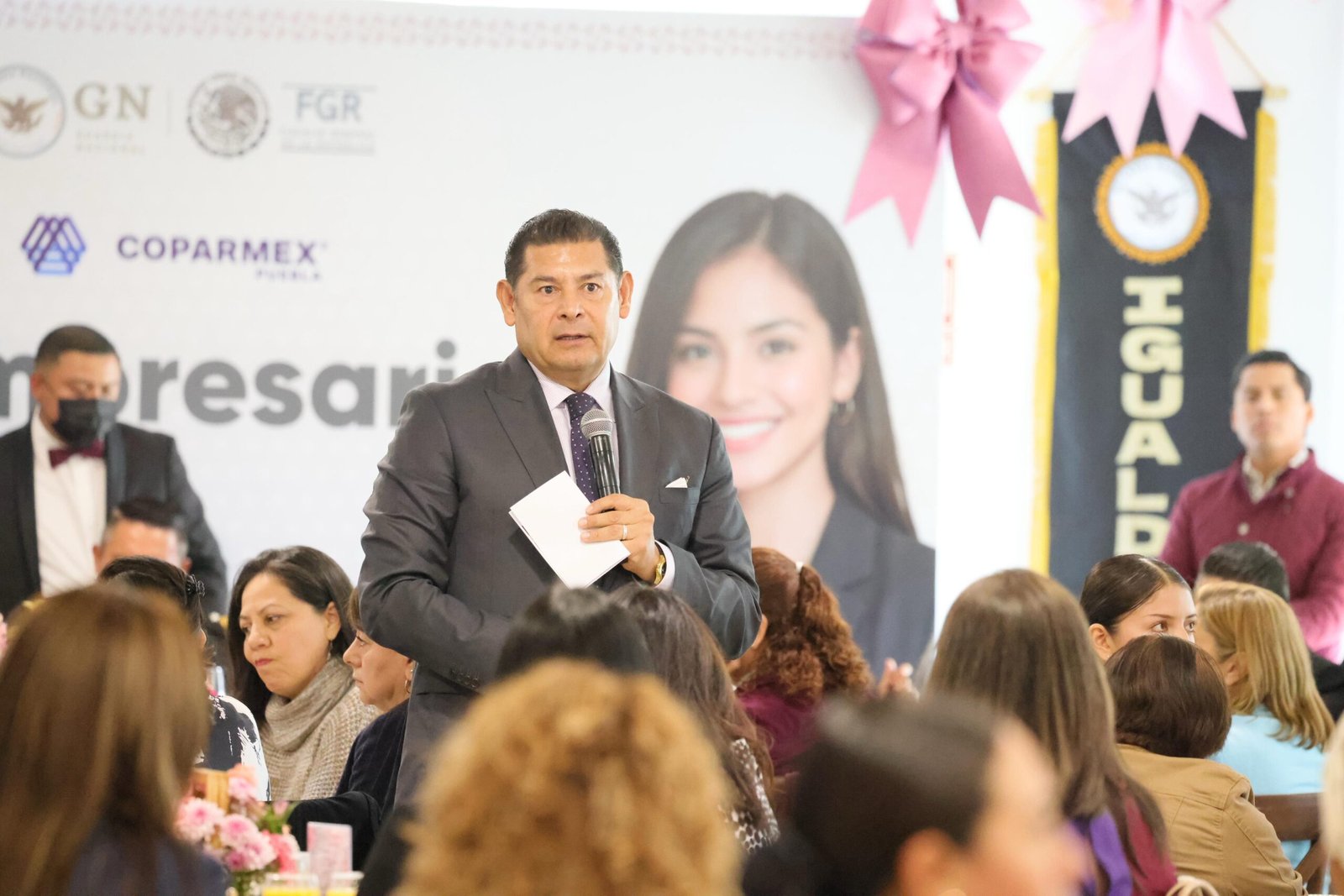 El gobernador reconoció la participación de la presidenta de COPARMEX Puebla, Beatriz Camacho, quien representa a las mujeres empresarias en las mesas de seguridad, y que impulsa propuestas como los Paraderos Seguros, a través de los cuales se brinda mayor tranquilidad en sus traslados a automovilistas y transportistas. Asimismo, subrayó que las empresarias no sólo generan riqueza y empleo, sino que contribuyen a la construcción de entornos más seguros y solidarios.