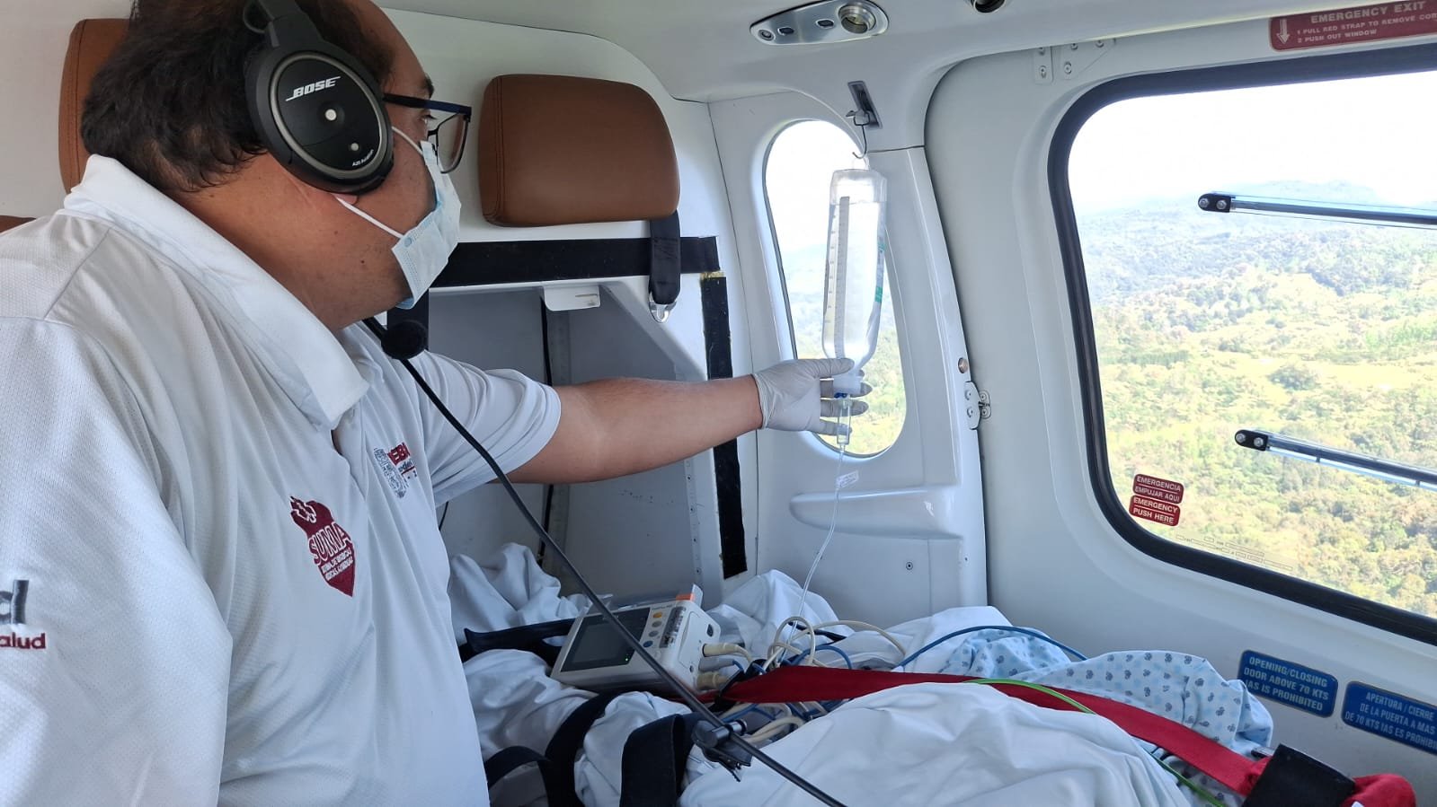Las acciones fueron realizadas por personal médico del Sistema de Urgencias Médicas Avanzadas (SUMA) a través de una ambulancia aérea, donde se garantizó un traslado seguro y supervisión médica continúa.