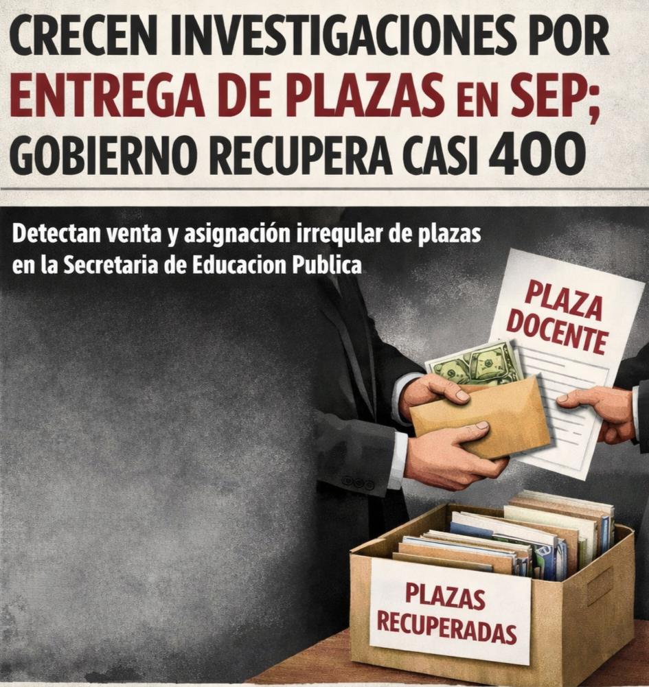 En entrevista, indicó que las investigaciones siguen en curso y destacó que hasta el momento se han recuperado cerca de 400 plazas irregulares, las cuales ya se están repartiendo entre los municipios que no cuentan con docentes.