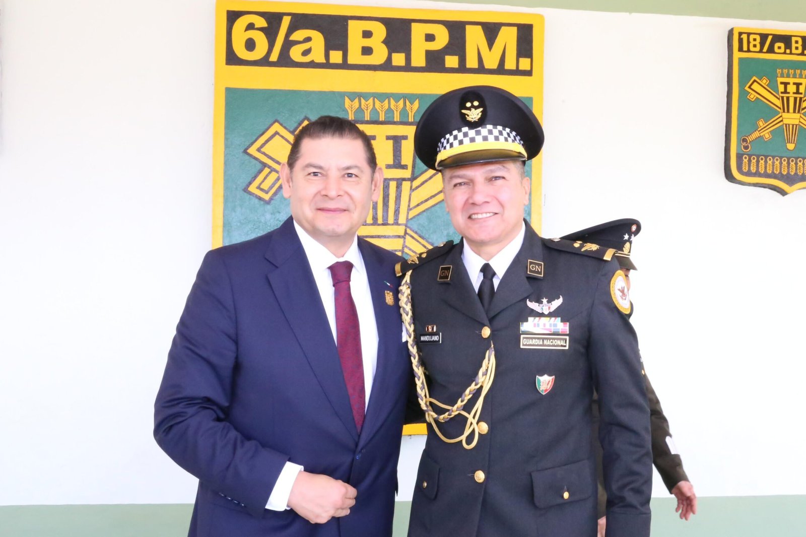 El mandatario estatal estuvo presente en la ceremonia de toma de protesta, posesión al cargo y protesta de Bandera del General de Brigada de Estado Mayor, Vicente Javier Mandujano Acevedo, quien asumió el cargo de Coordinador Estatal de la Guardia Nacional en Puebla, que se llevó a cabo en la explanada de la XXV Zona Militar.