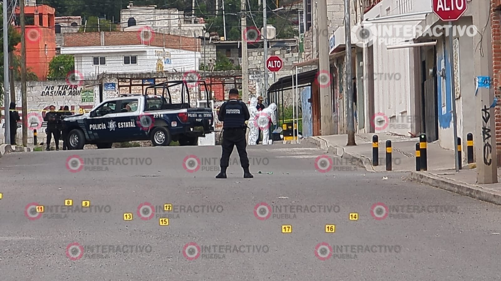 A un par de calles de donde se encontraba el cadáver, las autoridades ubicaron 17 indicios balísticos.