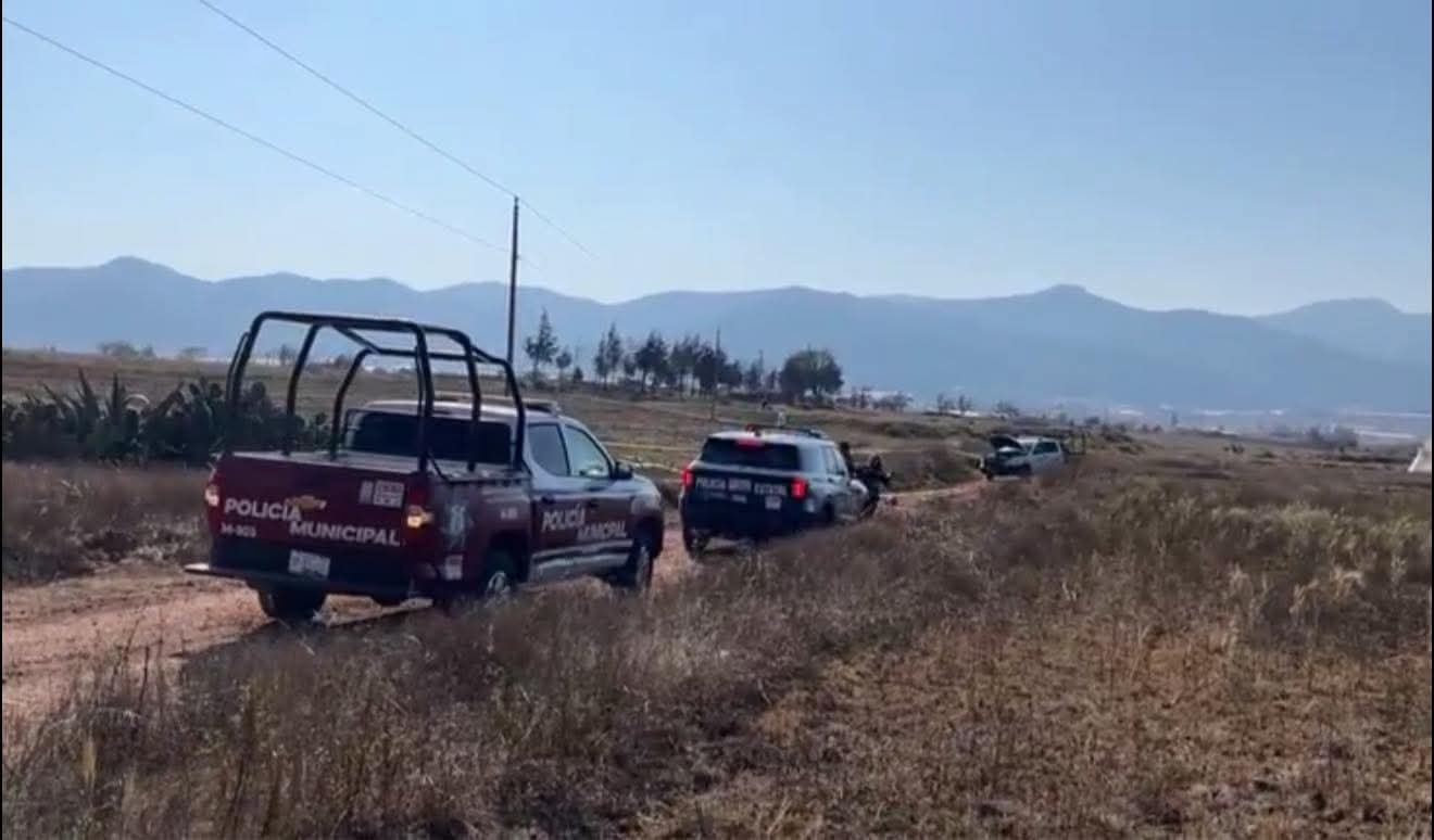 La Secretaría de Seguridad Pública Municipal recibió el reporte sobre la presencia de dos personas muertas en el camino a Atlamaxac.