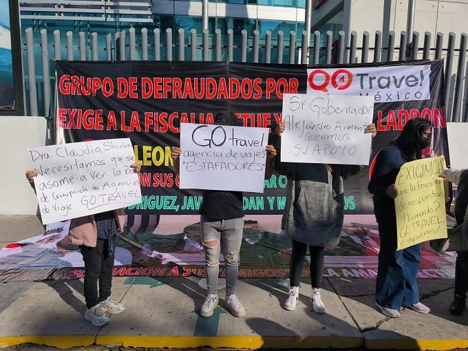 Un grupo de personas defraudadas por la empresa de viajes “Go Travel” se manifestó frente a la Fiscalía General del Estado (FGE) para exigir una investigación y sanción contra el o los responsables.