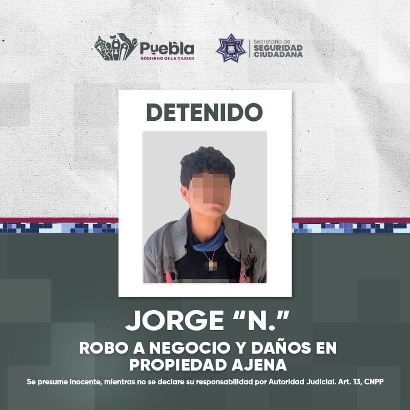 Durante el despliegue territorial, implementado en calles del Infonavit Amalucan, al oriente de la ciudad, elementos municipales detuvieron a Jorge “N”, de 24 años de edad.