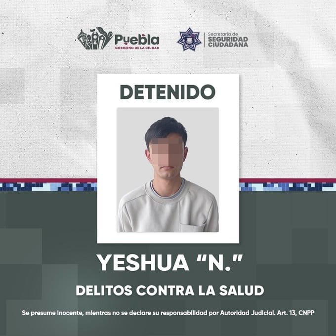 Como parte de las acciones encaminadas a reconstruir el tejido social y brindar paz, así como protección a las familias poblanas, la Secretaría de Seguridad Ciudadana (SSC), bajo la coordinación interinstitucional con los órdenes Federal y Estatal, detuvo a un hombre como probable responsable de delitos contra la salud.
