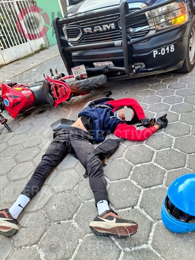 Un motociclista armado y drogado, fue detenido tras una persecución y derrape, en el municipio de San Pedro Cholula.