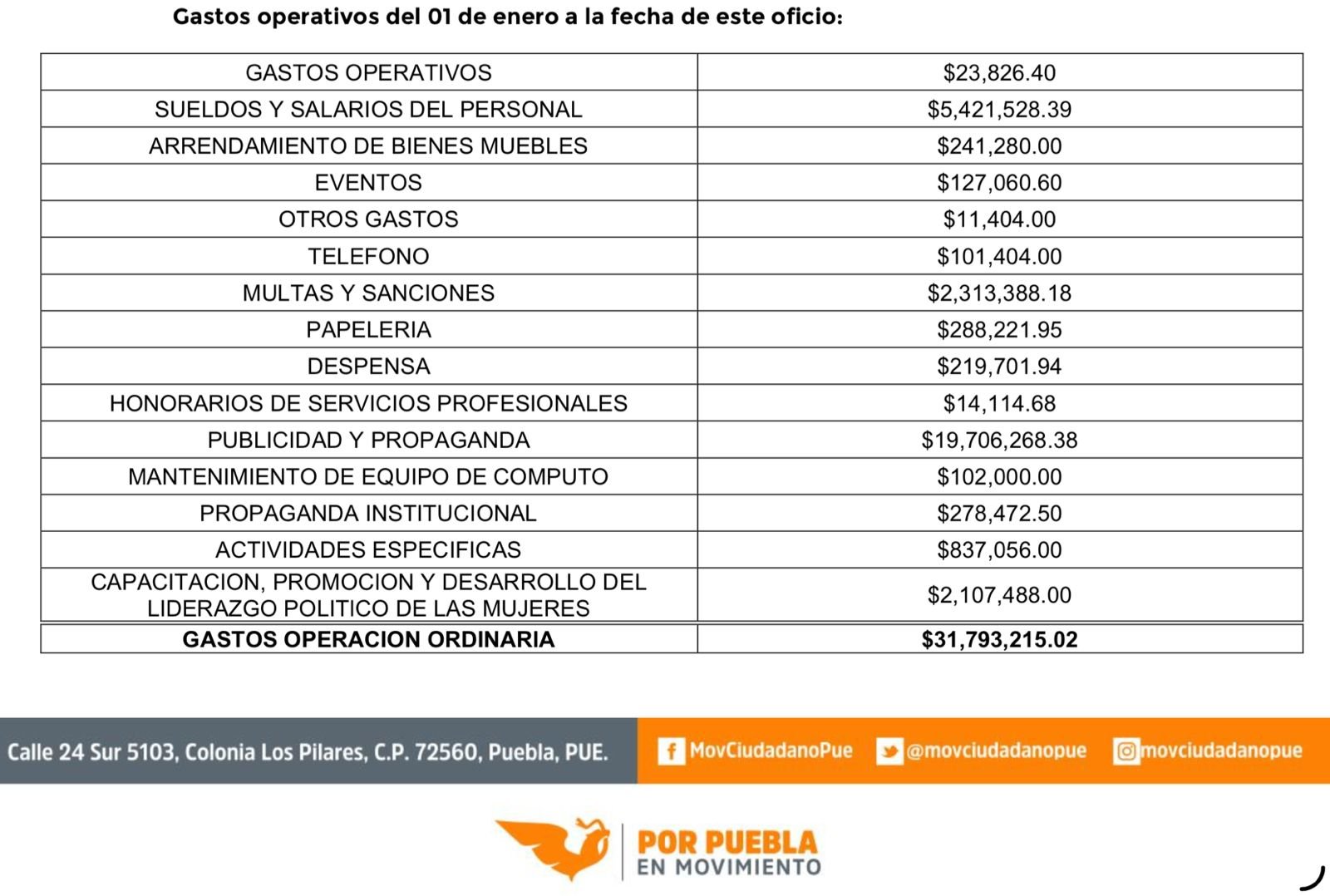 De acuerdo con la solicitud de información 211295225000017, de la Plataforma Nacional de Transparencia (PNT), del 1 de enero al a 17 de diciembre, el partido tuvo un gasto de operación ordinaria de 31 millones 793 mil 215 pesos.