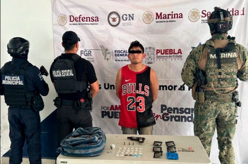 Resultado del trabajo coordinado y de la estrategia de combate a la delincuencia, la Secretaría de Seguridad Pública (SSP), con apoyo de la Secretaría de Marina (SEMAR) y la Policía Municipal de Izúcar de Matamoros, detuvo a Uriel N., alias “El Borrego”, objetivo prioritario de la Mixteca Poblana.