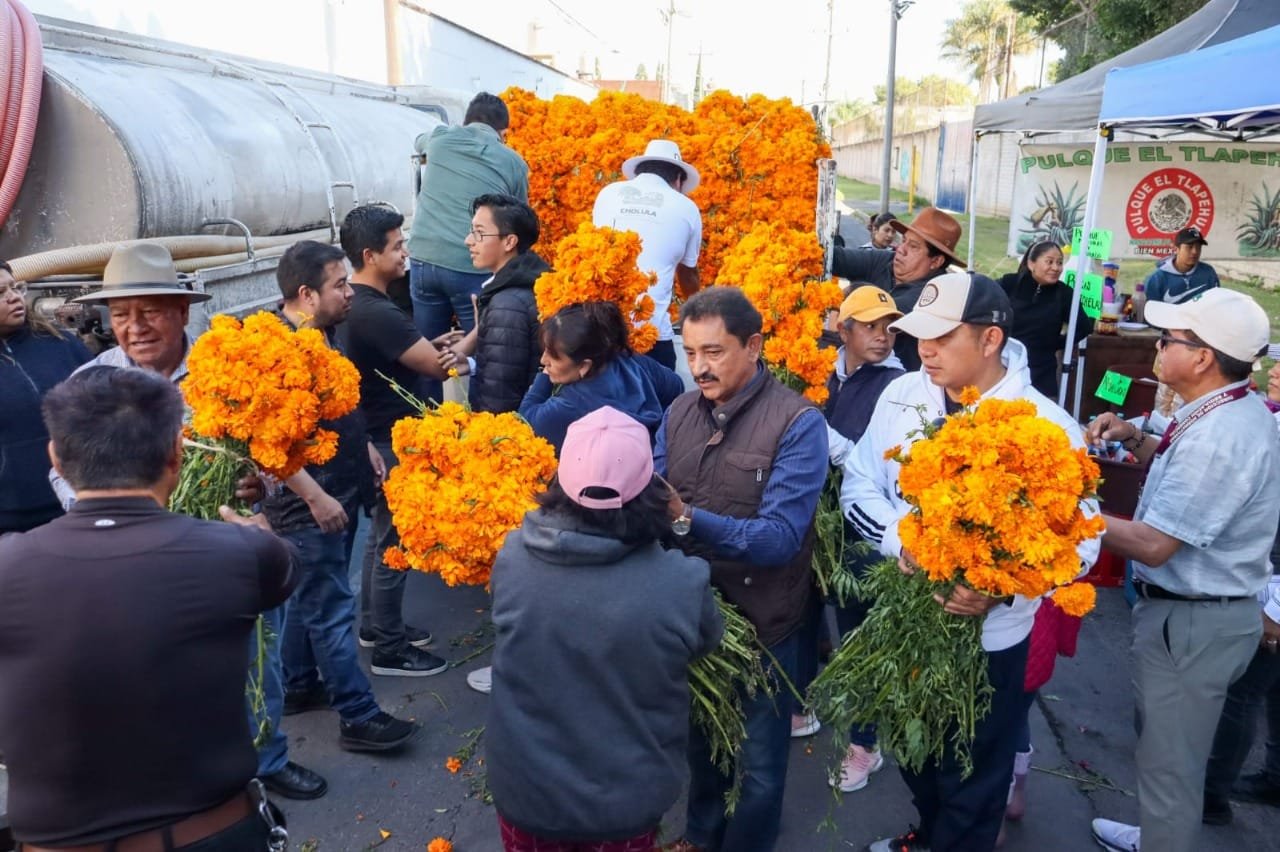 Durante la jornada, las y los cholultecas agradecieron este gesto que fortalece las tradiciones y contribuye al apoyo de la economía familiar. Las flores, símbolo del Día de Muertos, llenaron de color y significado los sepulcros del campo santo, creando un ambiente de respeto y unión.
