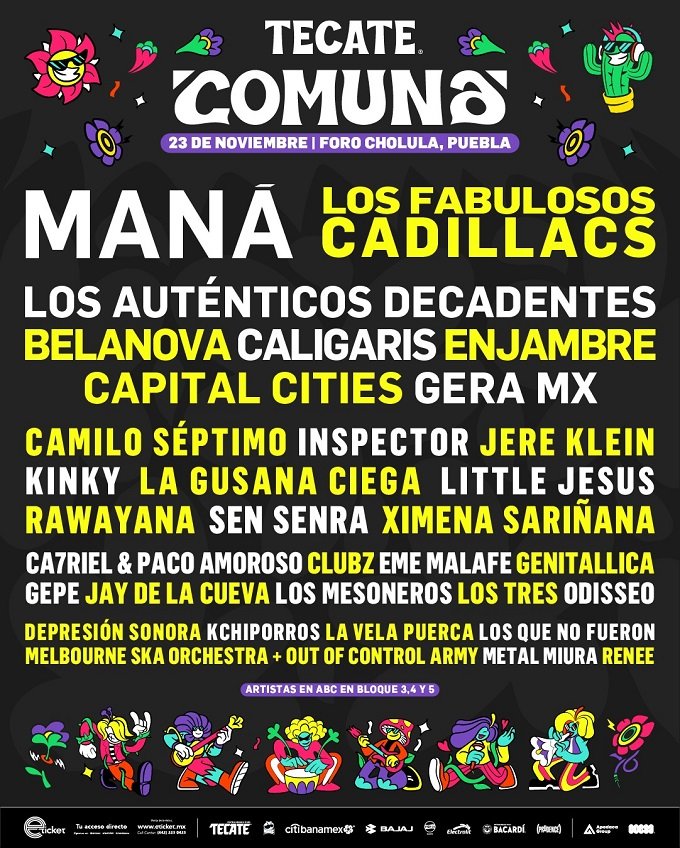 El Tecate Comuna, el festival de música más esperado del año en Puebla llega este próximo 23 de noviembre al Foro de San Andrés Cholula; el acceso será a partir de las 12 de la tarde.