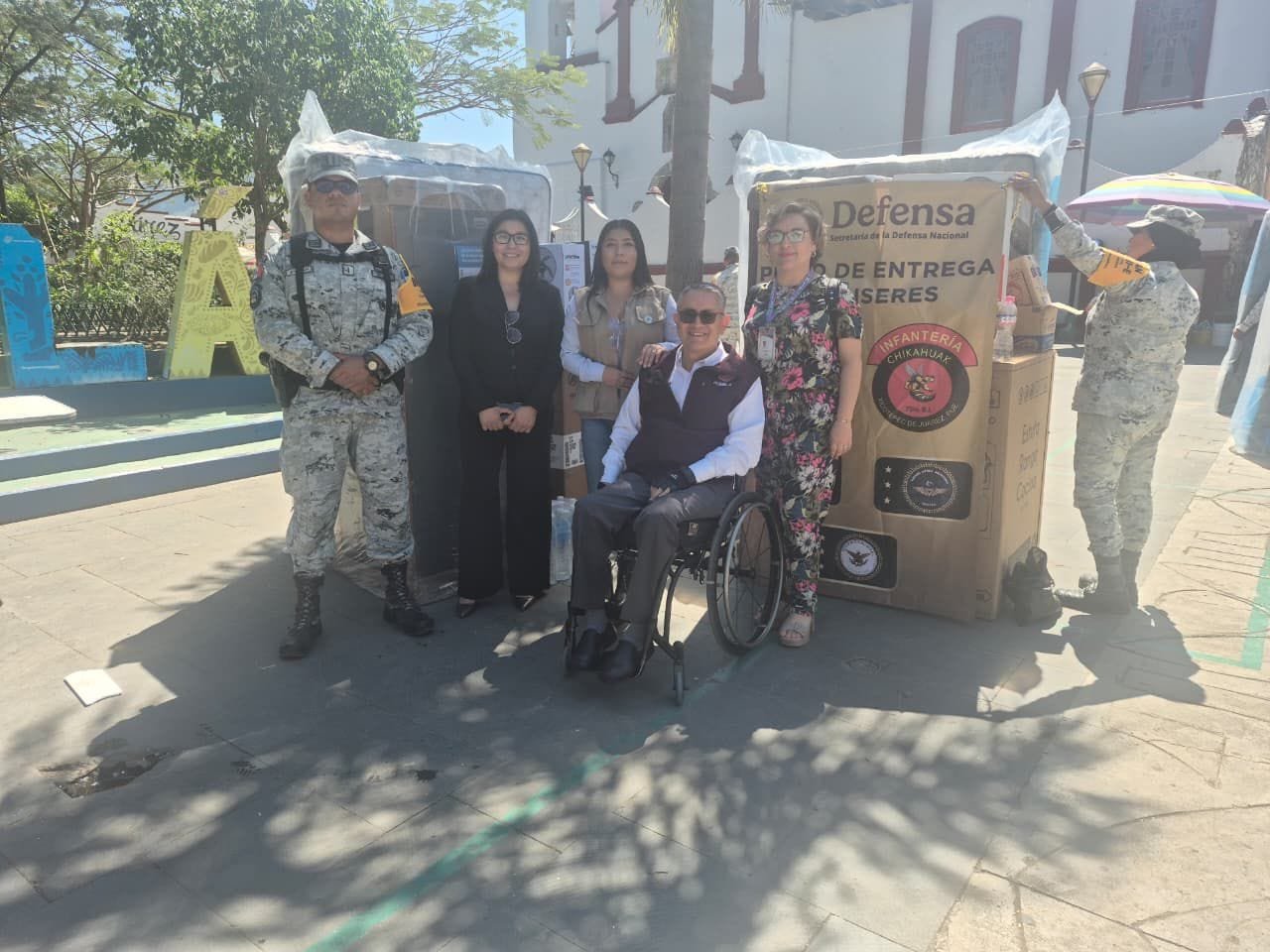 En coordinación con efectivos del 70º Batallón de Infantería de la Secretaría de la Defensa Nacional (DEFENSA) y por instrucciones de la presidenta Claudia Sheinbaum, las y los integrantes de esta delegación hicieron entrega de paquetes enviados por la Secretaría de Bienestar del Gobierno de México, a fin de cubrir necesidades de las y los habitantes. Cada uno estuvo compuesto por un refrigerador, una estufa, una licuadora, un juego de sartenes, un ventilador y un colchón, entre otros artículos que les permitirán a los beneficiarios recuperar gradualmente su calidad de vida.