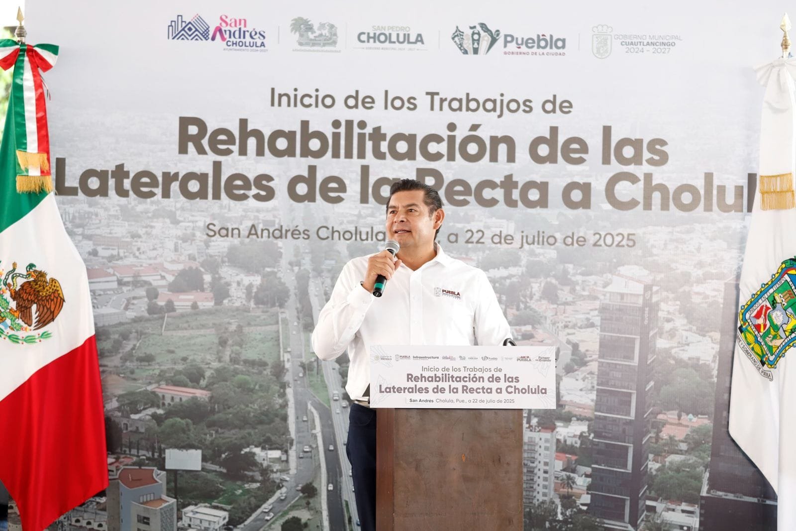 SAN ANDRÉS CHOLULA Pue.- El gobernador de Puebla, Alejandro Armenta, dio el banderazo de inicio a los trabajos de rehabilitación de las laterales de la Recta a Cholula, una obra estratégica que forma parte del programa federal “Senderos de Paz”, impulsado por la presidenta de México, Claudia Sheinbaum, con el objetivo de fortalecer la seguridad, la movilidad y el bienestar en la zona metropolitana.