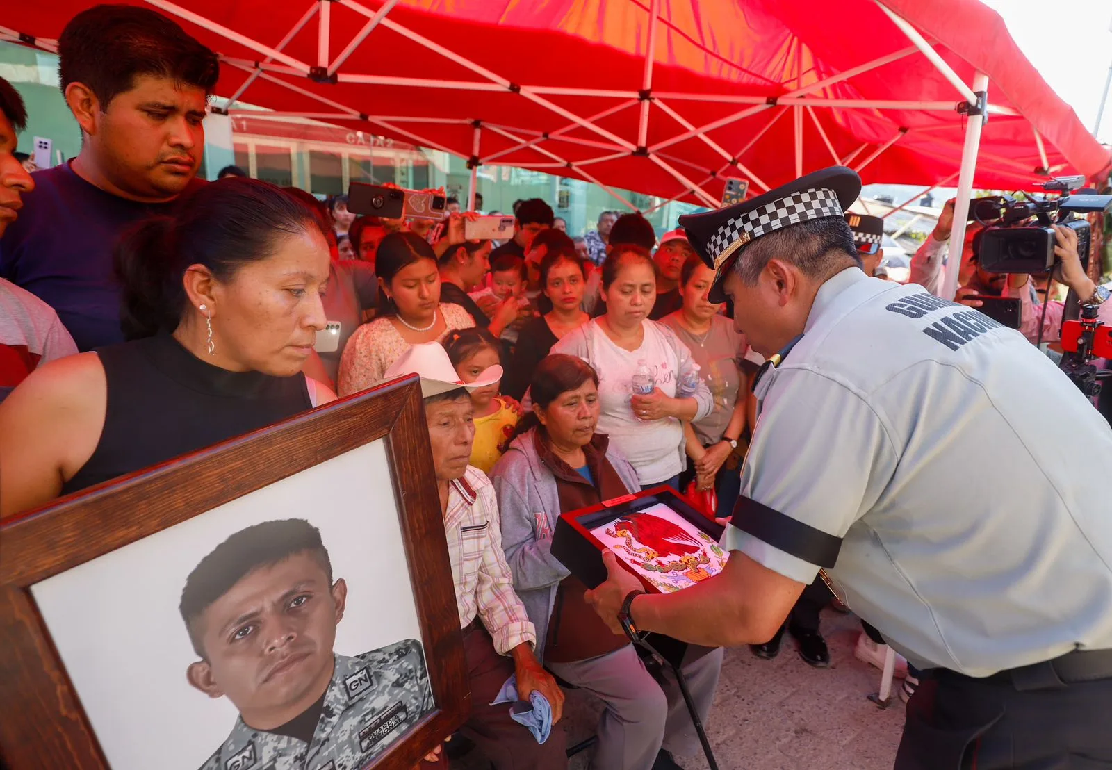 Durante la ceremonia de honores fúnebres, que se realizó en la presidencia auxiliar de Chicontla, comunidad de origen de Vázquez García, se reunieron familiares, amigos, autoridades y habitantes que exaltaron su valentía en la protección de la patria.