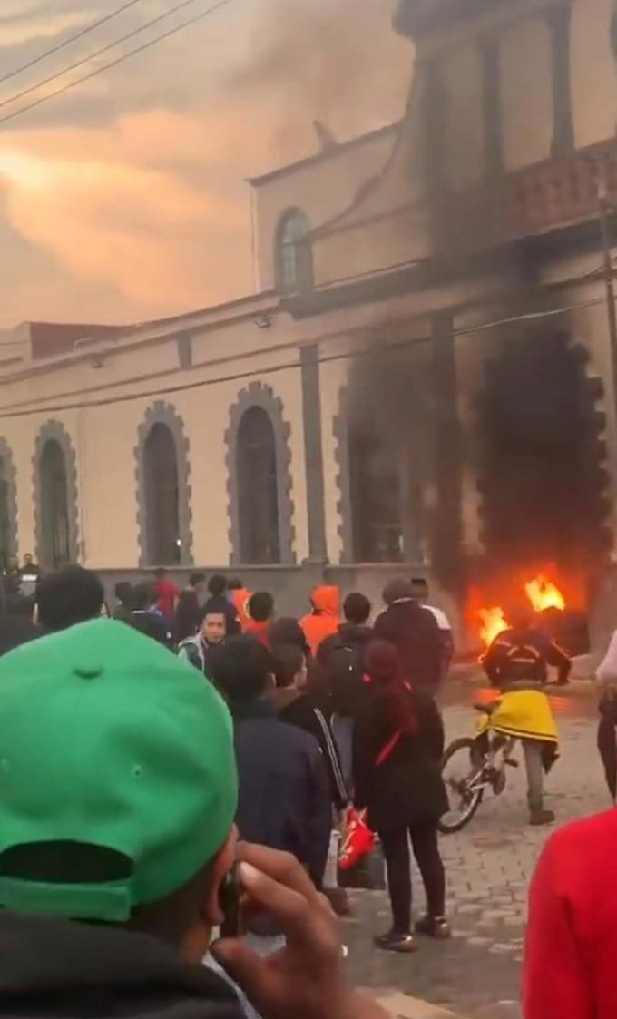 Sin embargo, su intento se vio frenado debido a que intervino la policía estatal para liberar a los presuntos delincuentes. Esto ocasionó más molestia a la gente que quemó la entrada del Palacio Municipal y una patrulla.