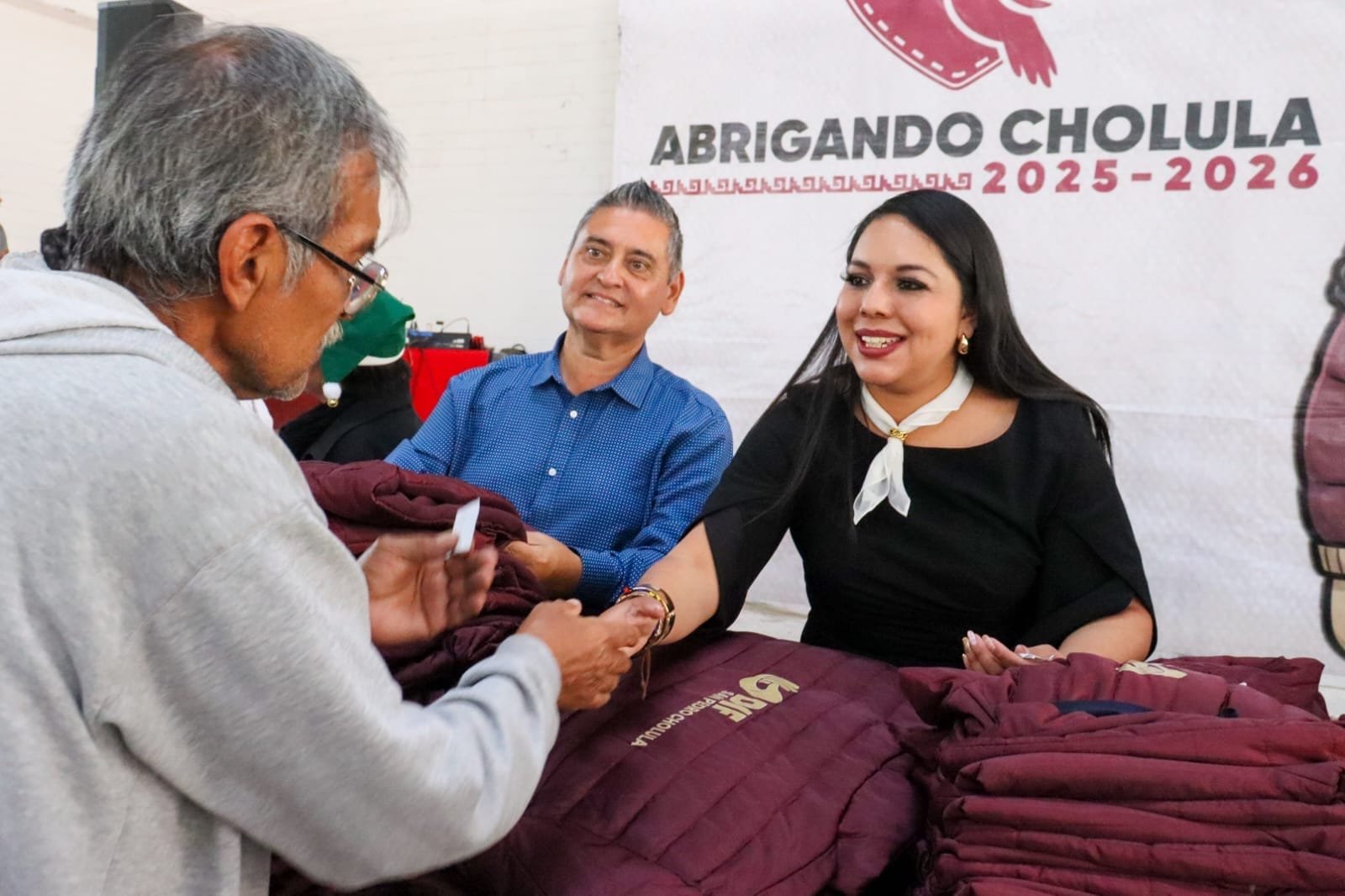 La jornada inaugural se llevó a cabo en la junta auxiliar de Santiago Momoxpan, donde se realizó la entrega de chamarras abrigadoras a personas adultas mayores y en situación vulnerable, como medida preventiva ante la temporada invernal, con el fin de reducir enfermedades y brindar prendas de calidad a las y los beneficiarios.