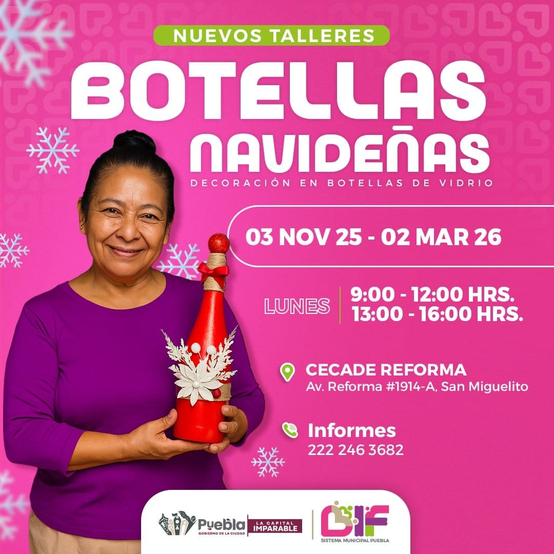 Aún pueden inscribirse al “Taller de bisutería” que inició este 28 de octubre y termina el 24 de febrero de 2026, en un horario de 12:00 a 15:00 horas. De igual forma, está el “Taller de decoración en botella de vidrio”, donde trabajarán diversas texturas, técnica de vitral con temática de Navidad, la cita es todos los lunes del 3 de noviembre al 2 de marzo de 2026, con horarios de 9:00 a 12:00 horas y 13:00 a 15:00 horas, en CECADE Reforma.