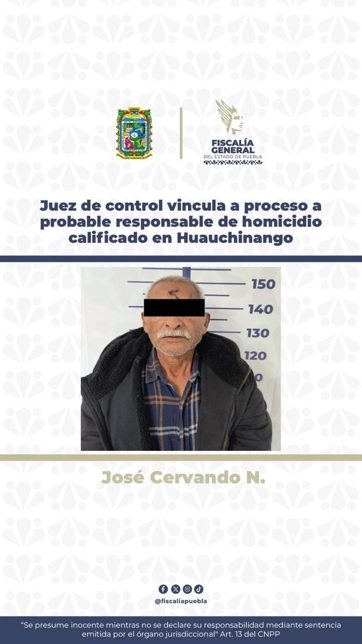 El Juez de Control determinó con base en los argumentos aportados por la Fiscalía General del Estado, la vinculación a proceso y otorgó prisión preventiva oficiosa contra José N., por su probable responsabilidad en el delito de homicidio calificado, ocurrido en Huauchinango, Puebla.