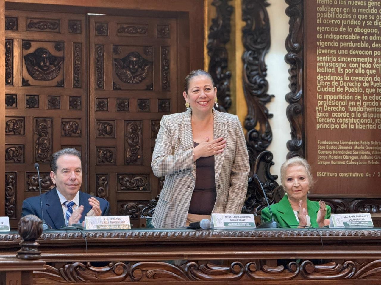En la Escuela Libre de Derecho de Puebla, la secretaria de Bienestar impartió la Conferencia Magistral “Política Pública y Bienestar: Cómo el Derecho transforma realidades”, donde afirmó ante estudiantes y docentes que la participación de las mujeres en la vida pública marca un momento histórico para el país.