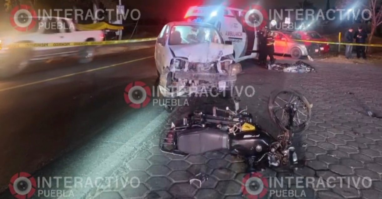 Un motociclista falleció al chocar contra un auto y salir proyectado, en el municipio de Atlixco.