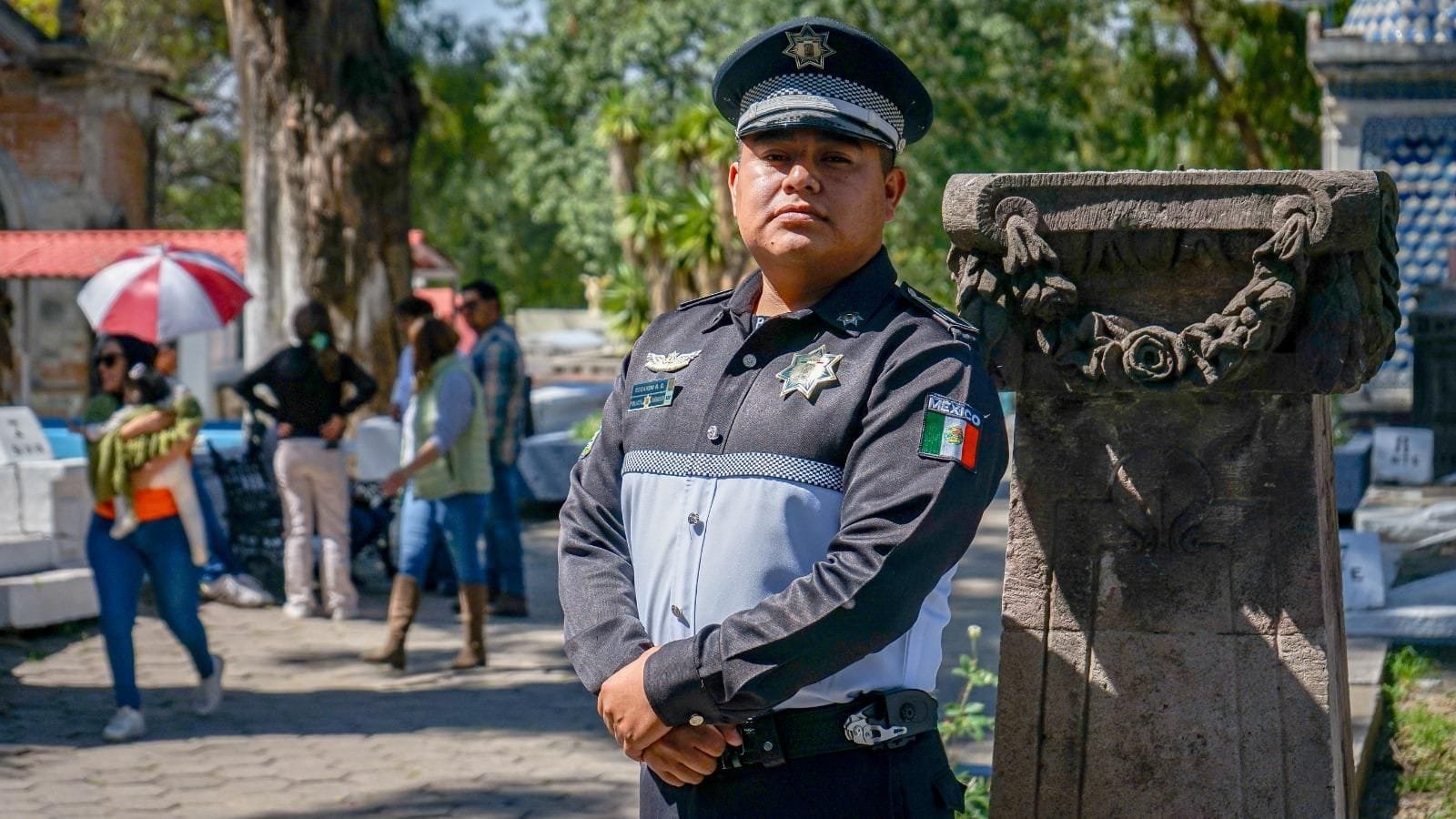 En cumplimiento al compromiso del Gobierno del Estado de Puebla, encabezado por el gobernador Alejandro Armenta, de garantizar el bienestar y generar entornos seguros para las familias poblanas, la Policía Auxiliar mantiene un despliegue operativo en distintos panteones de la capital poblana con motivo de las festividades del Día de Muertos, a fin de brindar seguridad y mantener el orden en las visitas de familiares y asistentes.