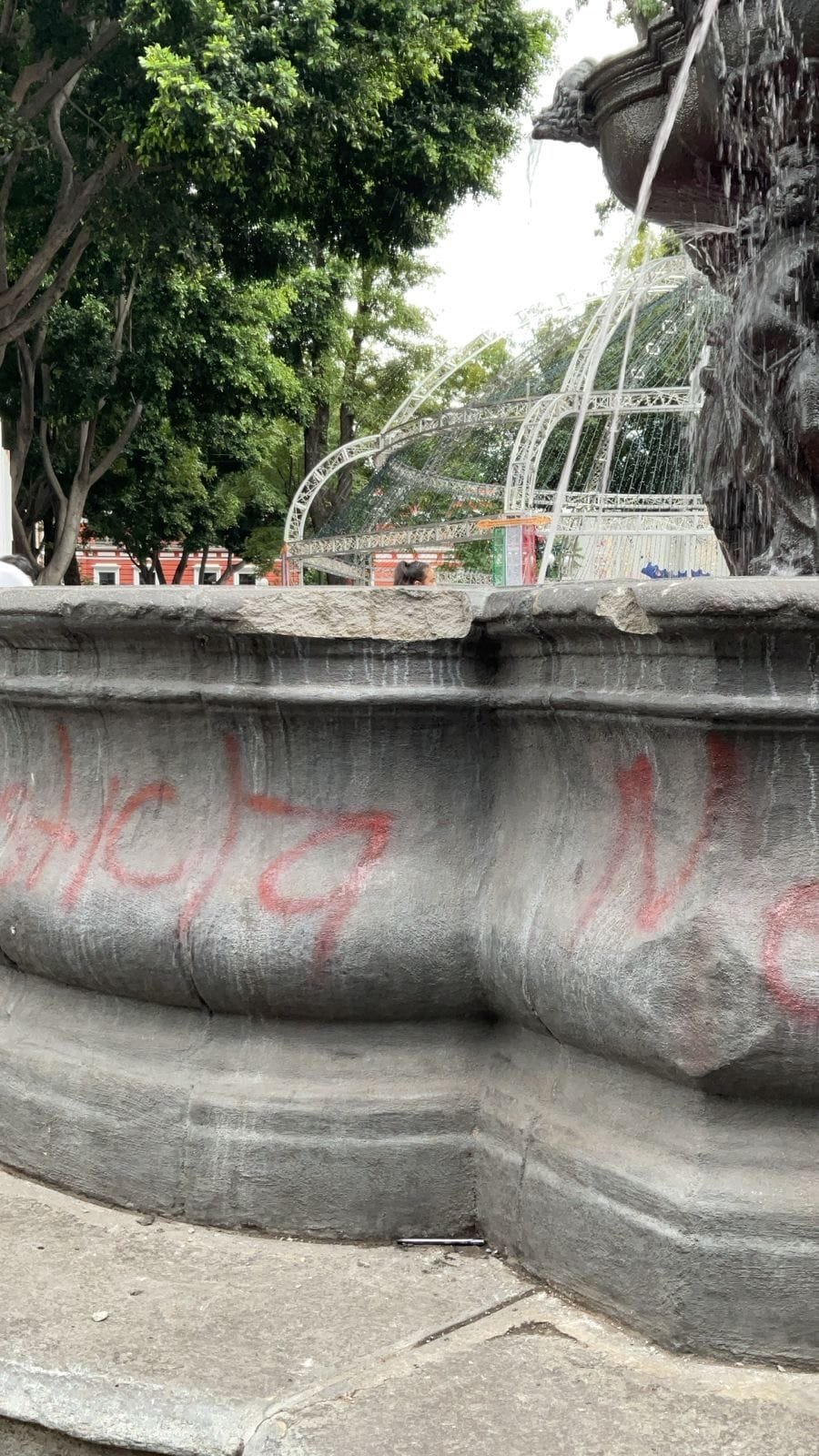 La Gerencia del Centro Histórico y Patrimonio Cultural informa que durante la tarde del 30 de agosto se registraron afectaciones en la Fuente de San Miguel, ubicada en el Zócalo de la capital, en el marco de una manifestación.