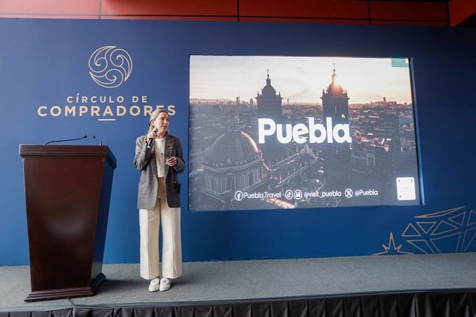 La subsecretaria encabezó el encuentro en el que a nombre del gobernador Alejandro Armenta, expuso que Puebla cuenta con 12 Pueblos Mágicos, cascadas, zonas arqueológicas y servicios por todo el estado que, en conjunto con su amplia conectividad y ubicación geográfica, hacen del estado un destino que puede interesar a potenciales viajantes de México y todo el mundo.