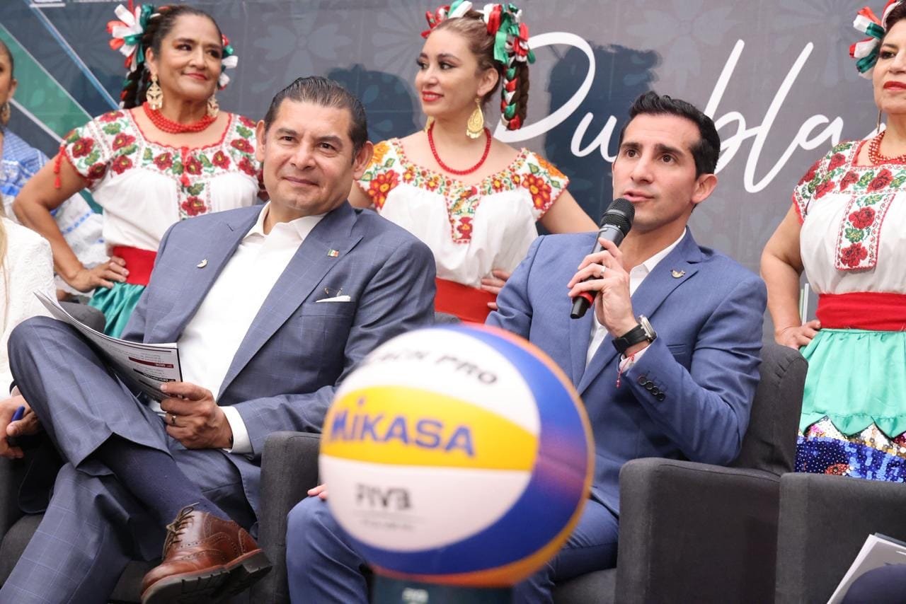El director general de la Comisión Nacional de Cultura Física y Deporte (CONADE), Rommel Pacheco Marrufo, y el gobernador de Estado de Puebla, Alejandro Armenta, presentaron oficialmente este miércoles el Campeonato Mundial Sub-21 de Voleibol de Playa 2025, prestigioso evento a celebrarse del 15 al 19 de octubre en dicha entidad.