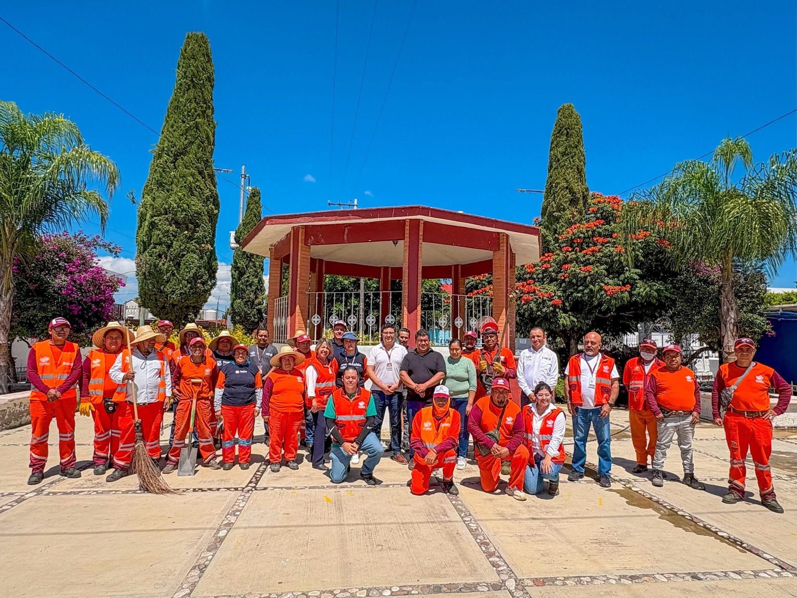 La campaña incluyó, además, labores de hidrolavado en explanadas y kioscos, la ejecución de chapeo en banquetas, así como el retiro de publicidad y la limpieza de espacios emblemáticos de las Juntas Auxiliares.