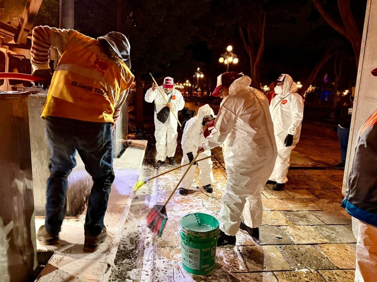 Puebla, Pue., 23 de junio de 2024.- Como parte del compromiso del Gobierno de la Ciudad con el cuidado del espacio público, se llevó a cabo la segunda intervención de limpieza integral en los contenedores soterrados del Zócalo, específicamente los ubicados sobre la 3 Poniente, una de las zonas más transitadas del primer cuadro de la ciudad.