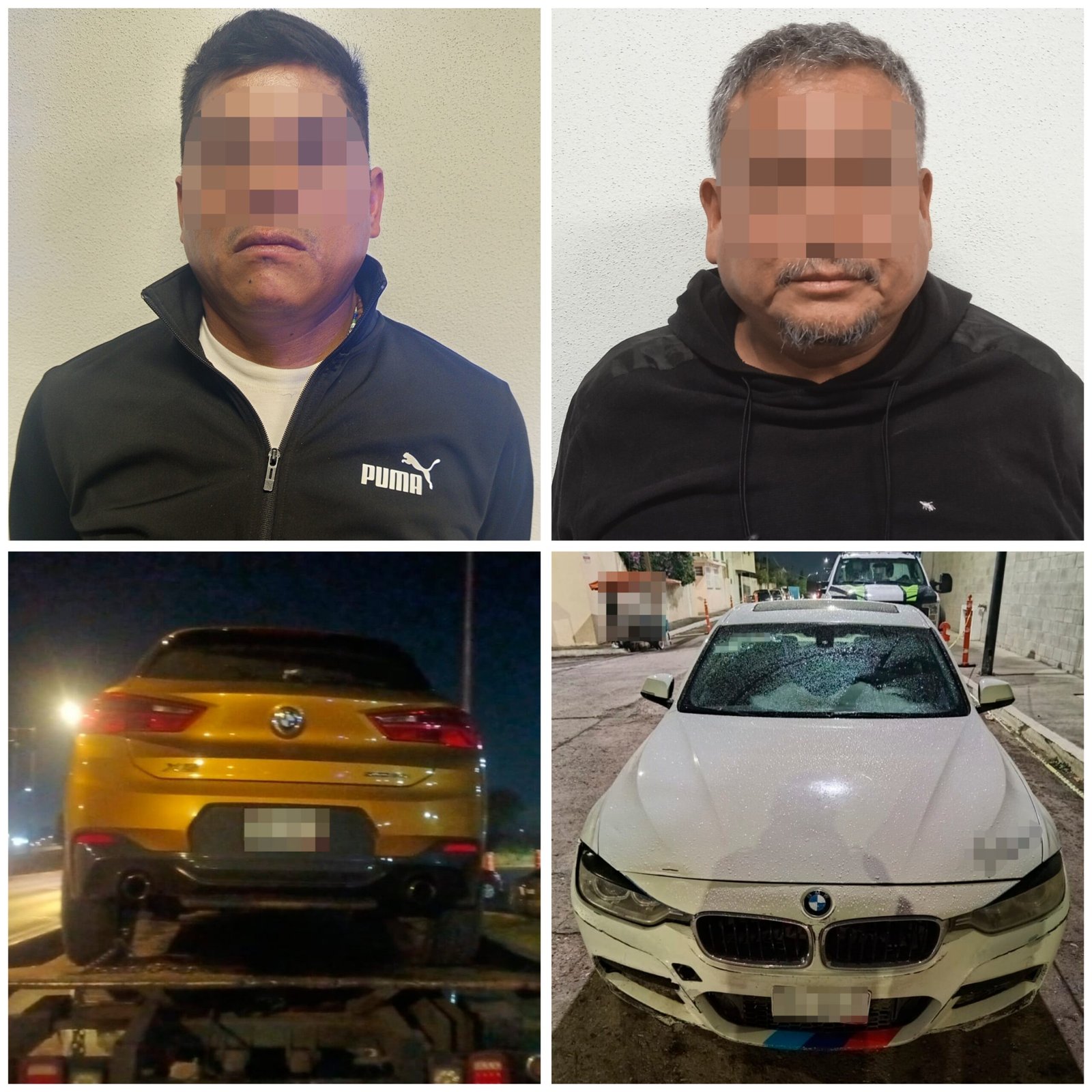 Las labores de reacción dieron como resultado la detención de José “N”, de 52 años de edad y de Fernando “N”, de 40 años de edad; este último cuenta con antecedentes penales por robo de vehículo; los detenidos, junto con un automóvil y la camioneta robada, fueron puestos a disposición del Agente del Ministerio Púbico, para dar inicio a las investigaciones a que haya lugar.