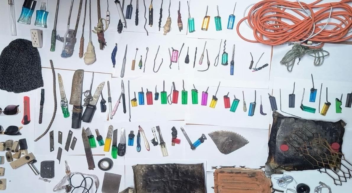 En esta supervisión, policías custodios aseguraron más de 90 objetos punzocortantes, recipientes para el consumo de sustancias ilícitas, envases de vidrio, pedazos de metal, entre otros artículos prohibidos.